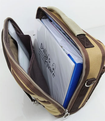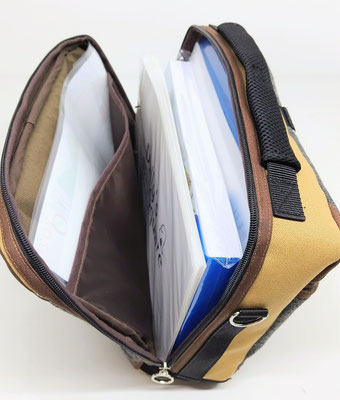前面側の大きな内ポケットは、A4クリアファイルが入るサイズです。